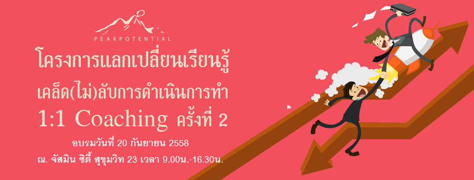 การโค้ช (Coaching) แตกต่างจากการสอนทั่วๆไปอย่างไร? การดำเนินการ 1:1 Coaching แตกต่างจาก Group Coaching อย่างไร? การดำเนินการ 1:1 Coaching มีกระบวนการตั้งแต่ต้นจนจบอะไรบ้าง? หัวใจสำคัญของการดำเนินการ 1:1 Coaching อยู่ที่เรื่องอะไรบ้าง? การพัฒนาเทคนิคการโค้ชแบบ 1:1 Coaching ของตัวเองต้องทำอย่างไรบ้าง? ค้นหา “คำตอบเหล่านี้” ได้ด้วยตัวเองกับกระบวนการสอนแบบ Training & Group Coaching พร้อมกับสร้างแนวทางการดำเนินการโค้ชได้ด้วยตัวเอง ผ่านกิจกรรมบทบาทสมมุติ (Role Playing) ด้วยตัวเองเพื่อให้เกิดความเข้าใจและรู้สึกได้ด้วยตัวเอง คุณจะได้ดำเนินการทำกิจกรรมและทำ Role Playing 1:1 Coaching เช่น... การฟังให้เข้าใจลักษณะของโค้ชชี่ก่อนดำเนินการโค้ช การฟังด้วยบทบาทที่ต่างๆ กันจะเกิดอะไรขึ้น? การดำเนินการ 1:1 Coaching แบบปกติทั่วไป การดำเนินการ 1:1 Coaching แบบมีตัวอย่างคำถามเป็นแนวทาง การดำเนินการ 1:1 Coaching แบบกระบวนการ GROW Model ผมมั่นใจว่า... ทุกท่านจะสนุกกับการค้นพบแนวทางการโค้ชของตัวเองอย่างแน่นอน!!